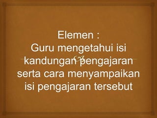 1) Guru memahami kandungan subjek dan cara mengajarnya kepada murid.