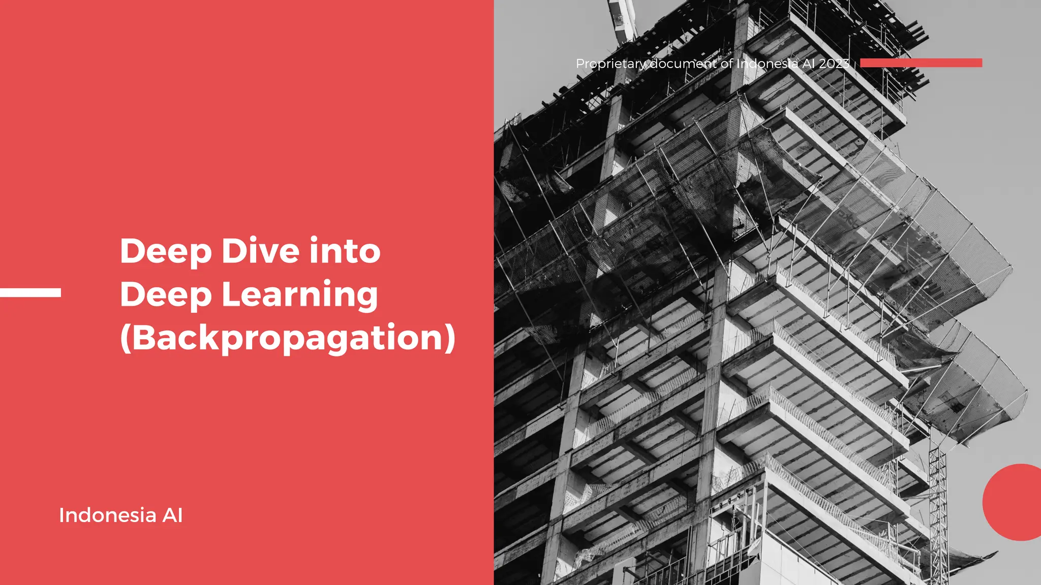 Dokumen ini menjelaskan tentang algoritma backpropagation dalam deep learning, termasuk konsep dasar, fungsi loss, dan pengaturan learning rate serta stochastic gradient descent (SGD) sebagai metode optimisasi. Proses backpropagation melibatkan perhitungan gradien kesalahan untuk memperbarui bobot dalam neural network, dan pentingnya fungsi kerugian yang diukur untuk menilai akurasi model. Selain itu, pemilihan learning rate yang tepat serta teknik optimisasi yang berbeda juga dibahas untuk meningkatkan performa model.