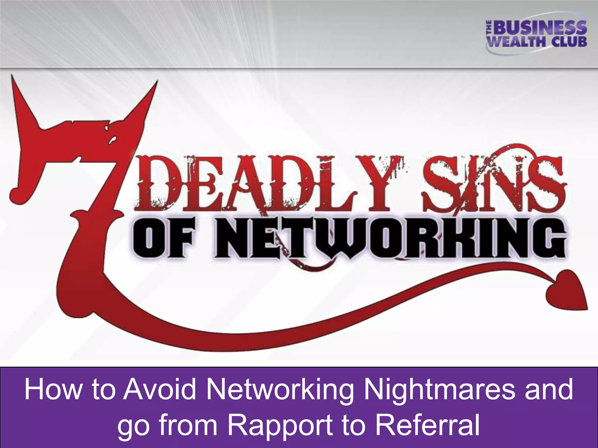 The document outlines strategies for effective networking, emphasizing the importance of planning, professionalism, and having a clear value proposition. It identifies common mistakes made in networking, such as poor preparation and lack of follow-up, and suggests approaches to building long-term relationships. Additionally, it invites readers to join a business growth community for further education and networking opportunities.