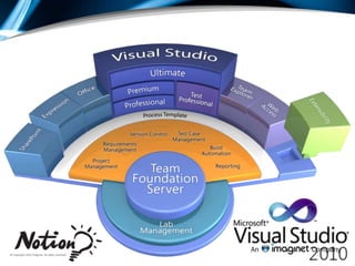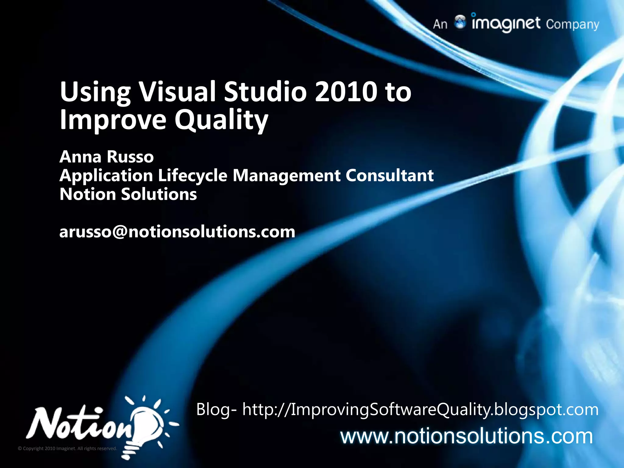 Using Visual Studio 2010, teams can improve software quality through 7 steps: 1) work management with hierarchical tasks and improved reporting; 2) defining "done" with dashboards; 3) automated builds with traceability from development to testing; 4) manual and automated testing tools; 5) developer quality tools to find and fix bugs early; 6) test lab management with virtual environments; and 7) continuous improvement through an integrated and productive environment.
