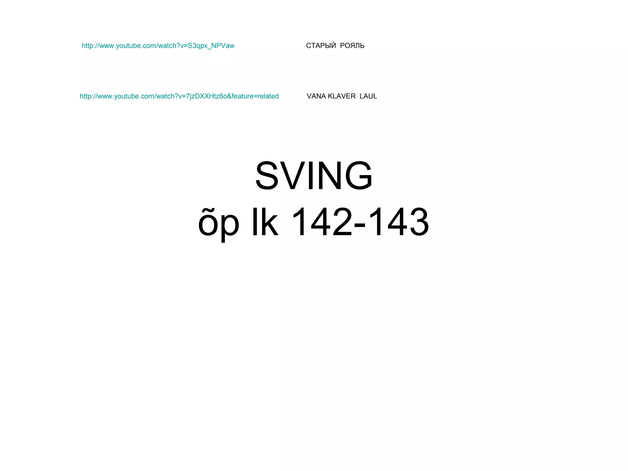 • Sving oli esimena jazz-muusika stiili, mis levis ka Ameerika Ühendriikidest väljapoole