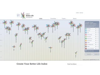 The document provides 7 tips for creating visual presentations: 1) keep messages simple and concise like billboards, 2) use powerful images sparingly, 3) respect typography and audience needs, 4) incorporate symbolic elements, 5) showcase information beautifully through diagrams, 6) maintain a clear structure with landmarks, and 7) customize templates to your own style. The tips are accompanied by examples and sources of inspiration.