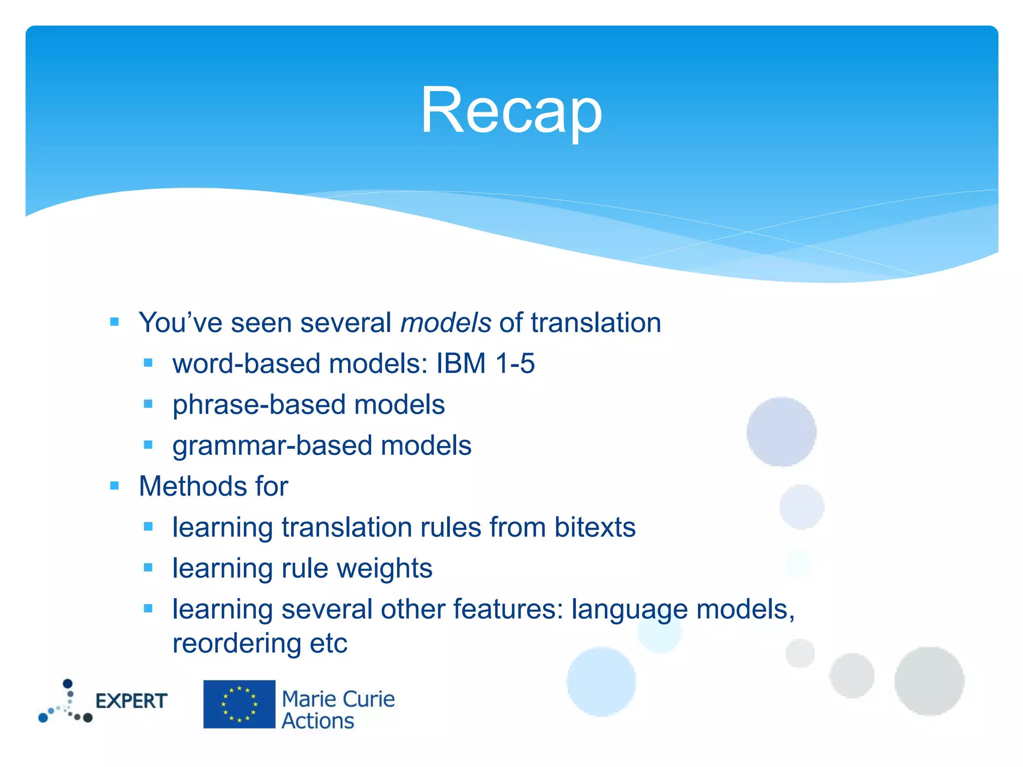 This document discusses statistical machine translation decoding. It begins with an overview of decoding objectives and challenges, such as ambiguity in possible translations. It then describes decoding phrase-based models using a linear model and dynamic programming approach, with approximations like beam search. Grammar-based decoding is also covered, including synchronous context-free grammar parsing and translation. Key challenges like search complexity and language model integration are addressed.