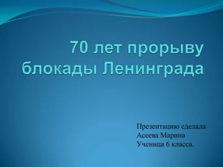 Документ описывает исторические события, связанные с блокадой Ленинграда в годы Второй мировой войны, включая прорыв блокады и освобождение города от немецких войск. Приводятся данные о потерях населения и последствиях блокады, а также о мероприятиях, проведенных в честь освобождения Ленинграда, включая награды и памятники. Упоминается, что за время блокады погибло от 300 тысяч до 1,5 миллиона человек, а город был удостоен звания 'Город-герой'.