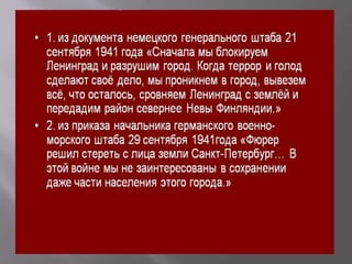 Документ повествует о блокаде Ленинграда во время Второй мировой войны, акцентируя внимание на страданиях и мужестве людей, переживших эти тяжёлые времена. Описывается как блокада изменила жизнь города, приводя к голоду и смерти, но также и к чувству единства и борьбы. Важно сохранить память об этих событиях для будущих поколений, чтобы избежать повторения подобных ужасов.