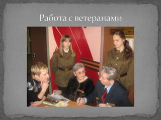 Документ описывает создание школьного музея боевой славы, посвященного 65-летию победы в Великой Отечественной войне. В нем перечислены этапы работы над проектом, включая исследование, создание концепции, сбор материалов и экспонатов, а также взаимодействие с ветеранами. Музей стал важным институтом социальной памяти и активного патриотического воспитания среди учащихся.