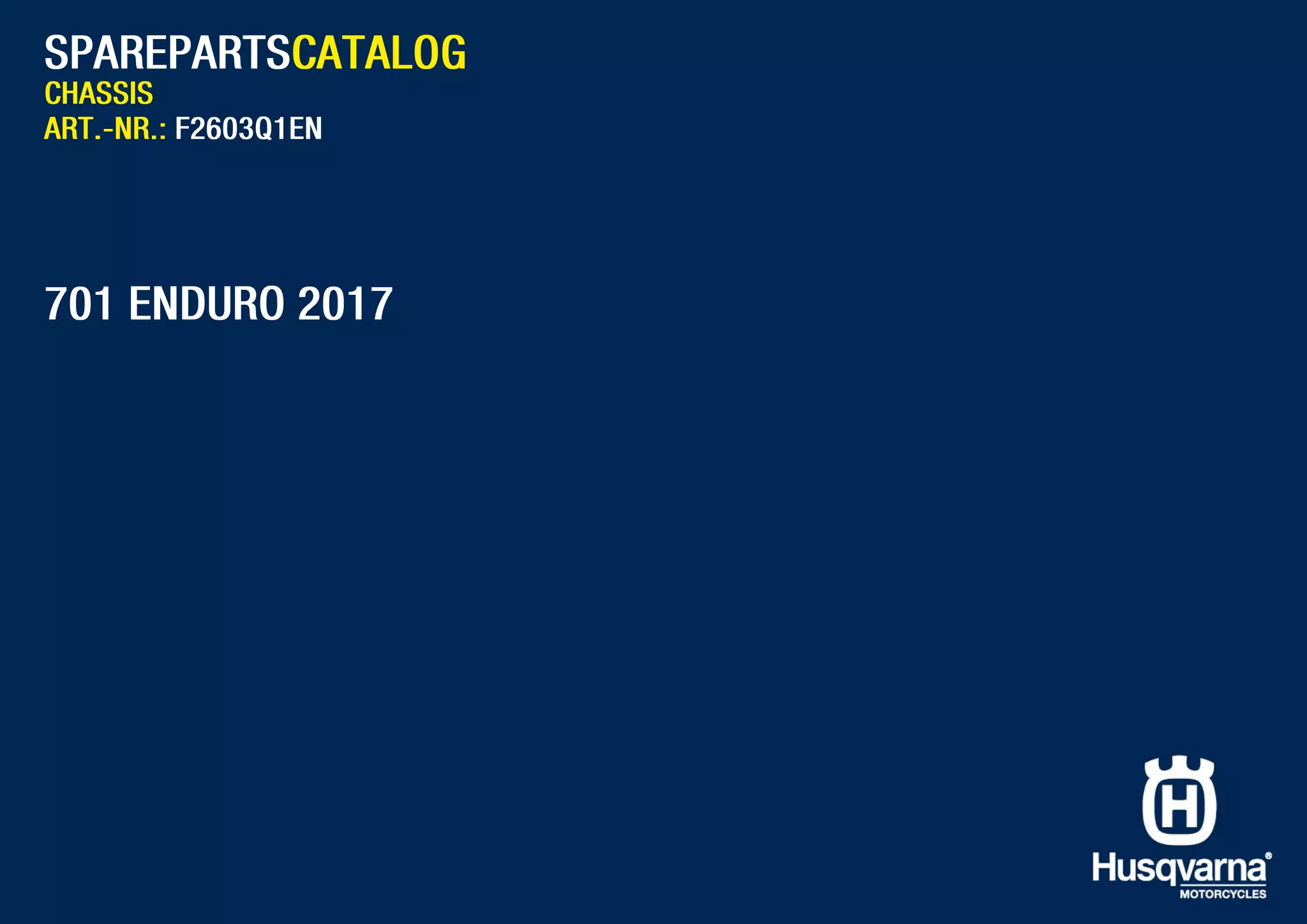 This document is a parts catalog for an Enduro motorcycle. It contains 33 sections with part numbers, names and quantities for various systems of the motorcycle including the front fork, triple clamp, handlebars, frame, engine guard, side and center stand, shock absorber, swing arm, exhaust and other parts. The document provides detailed lists of replacement and spare parts.
