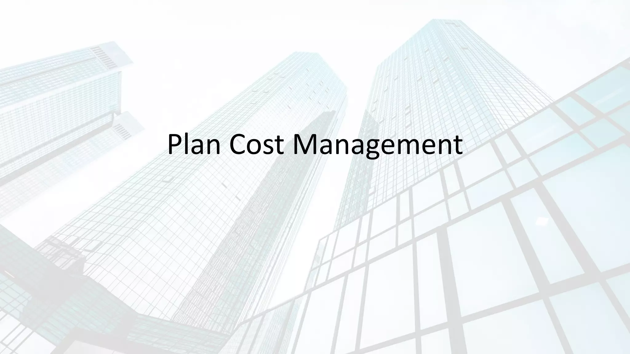 The Plan Cost Management process defines how project costs will be estimated, budgeted, managed, monitored and controlled. It provides guidance on cost management throughout the project. Key inputs include the project charter, schedule and risk plans. Expert judgement, data analysis and meetings are used. The main output is the Cost Management Plan which documents the cost processes, tools, units of measure and control thresholds.