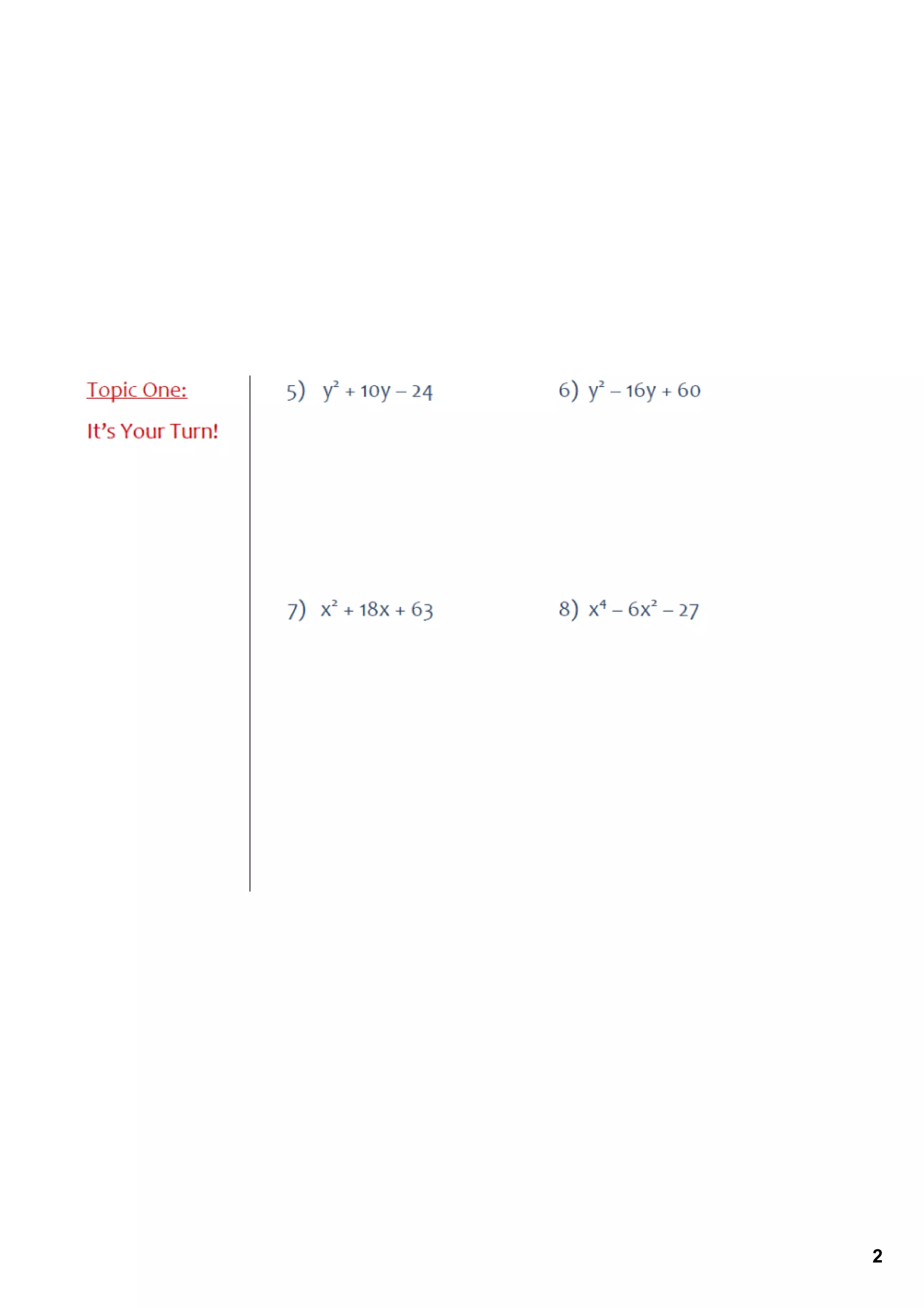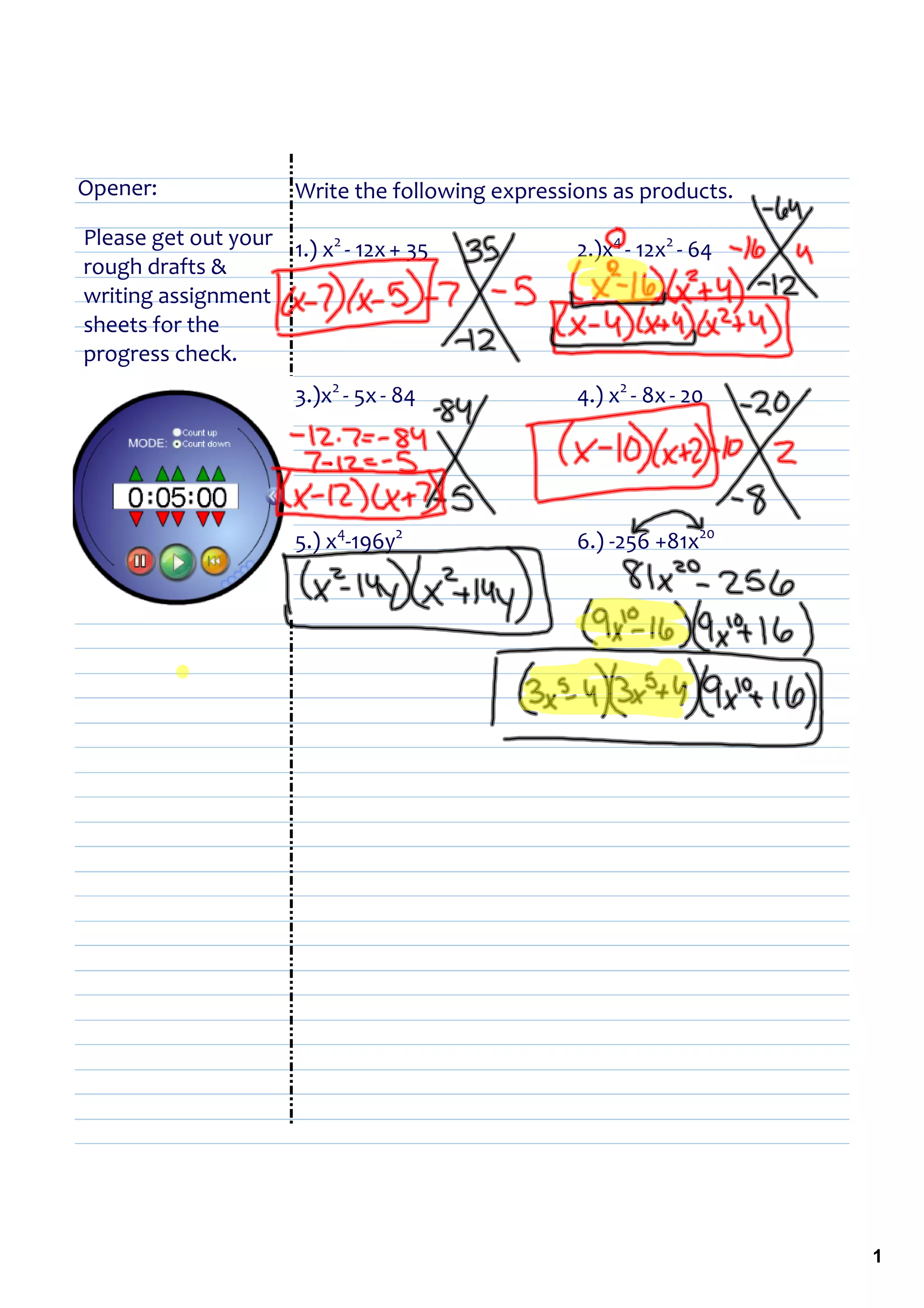 This document provides examples and explanations for factoring quadratic expressions using the method of completing the square. It begins with 6 expressions to factor. Then it discusses what completing the square means, provides examples of perfect square trinomials, and walks through examples of solving quadratics by completing the square. It discusses the different types of solutions that can be obtained. Finally, it provides practice problems for students to solve on their own and discusses the homework assigned.