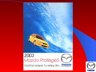 The document outlines Mazda's 2003 marketing communications campaign for the Protege5 vehicle. The campaign's objective was to increase awareness, interest, and sales of the Protege5. The target market was generation X and generation Y males aged 18-34. The media plan focused on print ads, direct mail, email, and gifts with a budget allocation across each channel. The campaign aimed to position the Protege5 as fun to drive with sporty styling and practicality to appeal to the lifestyle and values of the target generations.