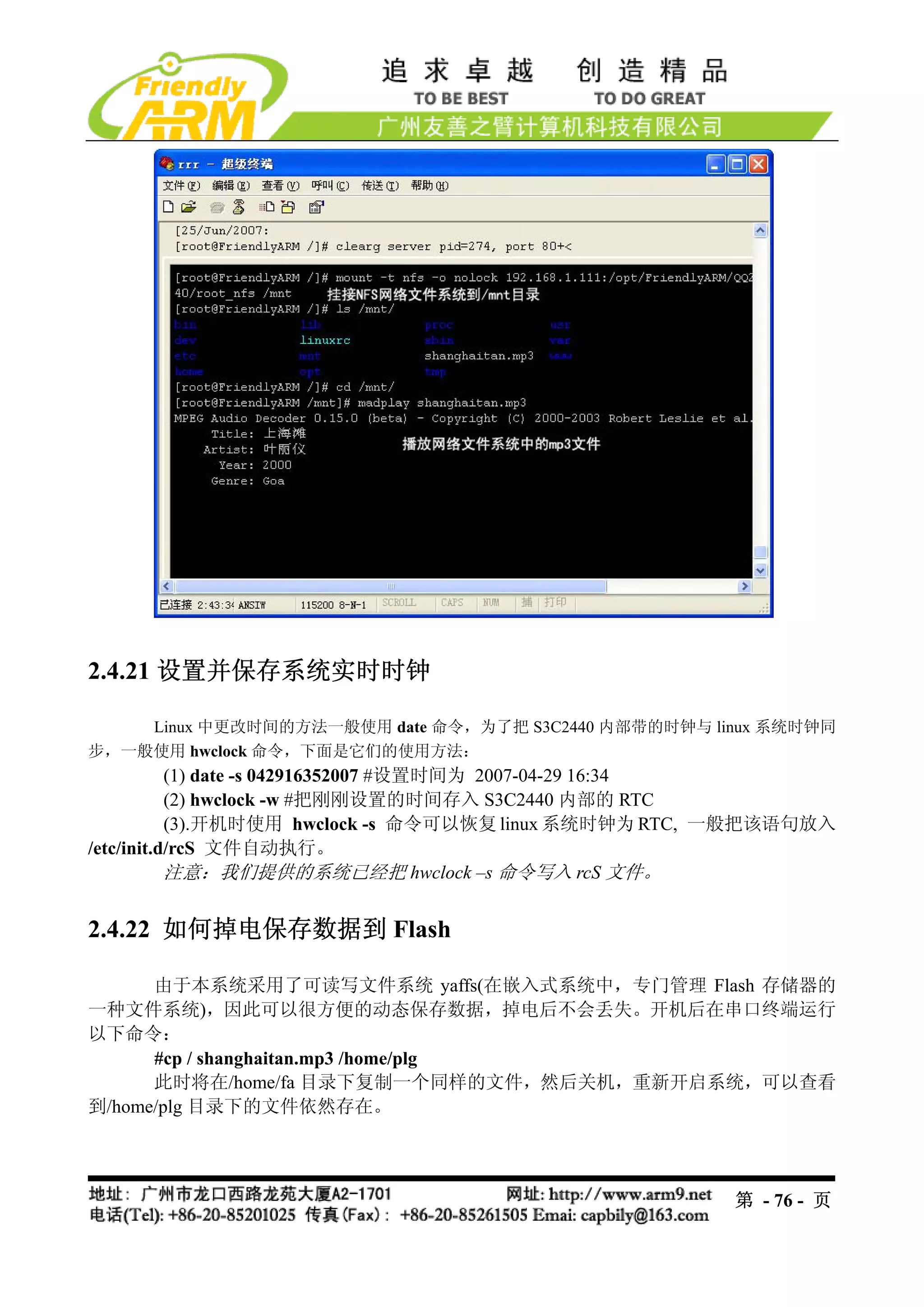 该文档涵盖了 Linux 系统中时间同步和文件管理的相关命令,包括设置系统时间、保存硬件时钟时间和备份文件到闪存的步骤。还提到了一些系统服务的启动和配置,涉及音频播放和网络服务的初始化。整体来看,文档提供了众多实用的技巧和命令行示例,用于系统配置和维护。