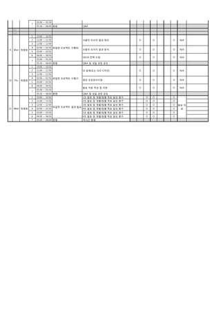 일 요일 교시시간 과정 내용 이론 실습 평가 실내 실외