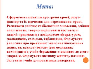 Сформувати поняття прогрупи крові, резус-
