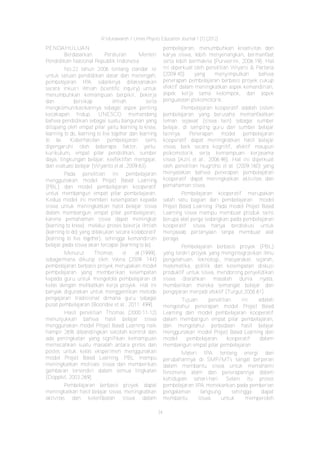 Dokumen ini membahas penerapan model Project Based Learning (PBL) dan pembelajaran kooperatif untuk membangun empat pilar pembelajaran pada siswa kelas VIII SMP. Hasil penelitian menunjukkan bahwa model PBL lebih efektif dalam meningkatkan hasil belajar dibandingkan model pembelajaran kooperatif, terutama dalam aspek pemahaman dan motivasi siswa. PBL juga memungkinkan siswa lebih aktif berpartisipasi dalam pembelajaran melalui kegiatan kolaboratif dan pembuatan alat peraga.