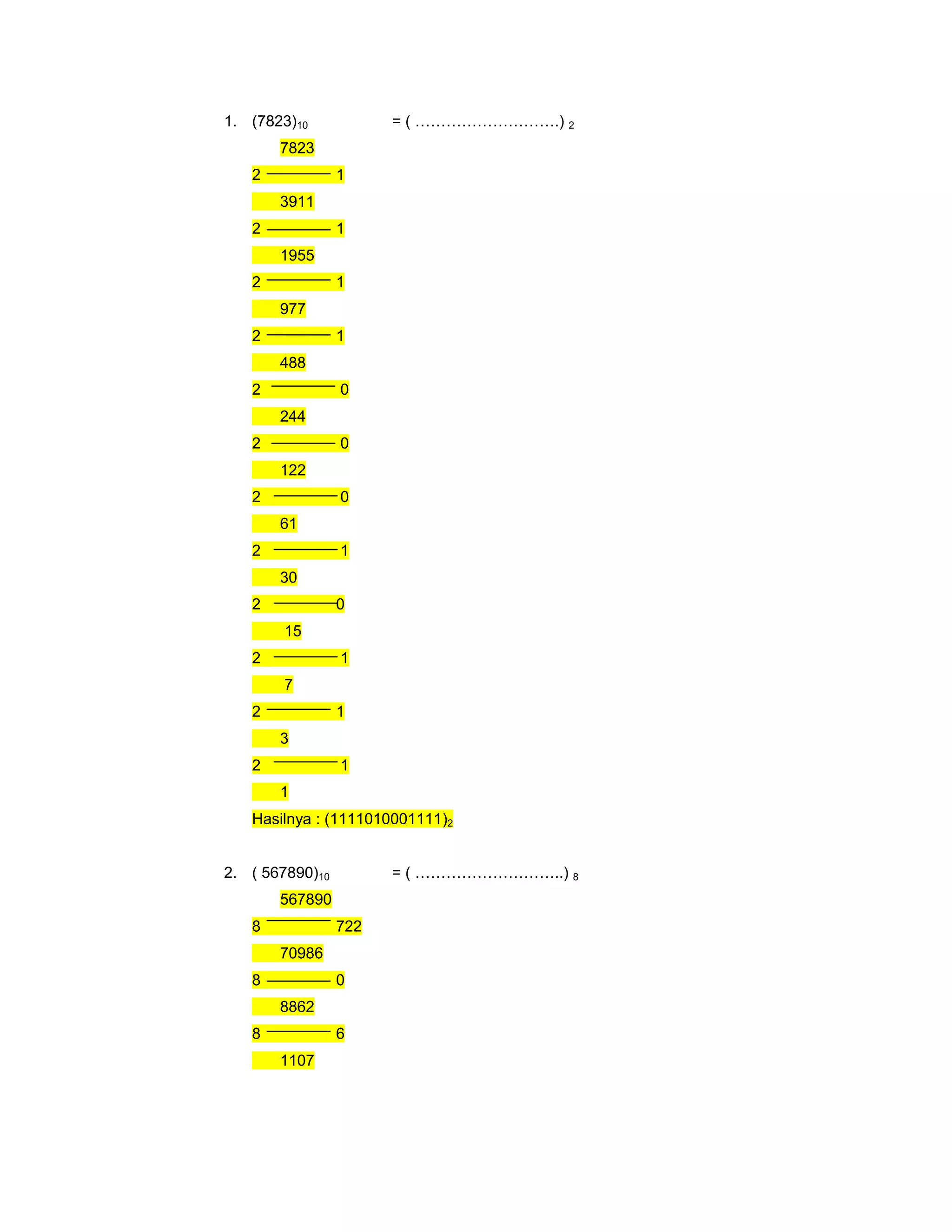 1. (7823)10 = ( ……………………….) 2