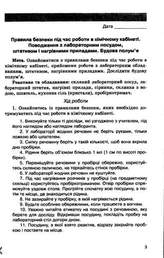 2. У лабораторії жодних речовин не беріть руками, тільки