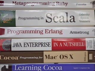 The document discusses learning various programming languages, highlighting their unique features and concepts such as typing models, concurrency, and collection handling. It covers languages like Ruby, Prolog, Scala, Erlang, Clojure, and Haskell, emphasizing their strengths, weaknesses, and practical examples. The author reflects on the experiences and insights gained from mastering these languages in a condensed format.