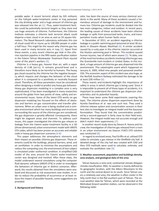 1. The document discusses a computational fluid dynamics (CFD) simulation of chlorine gas dispersion within an urban area near a water treatment facility in Tehran, Iran.