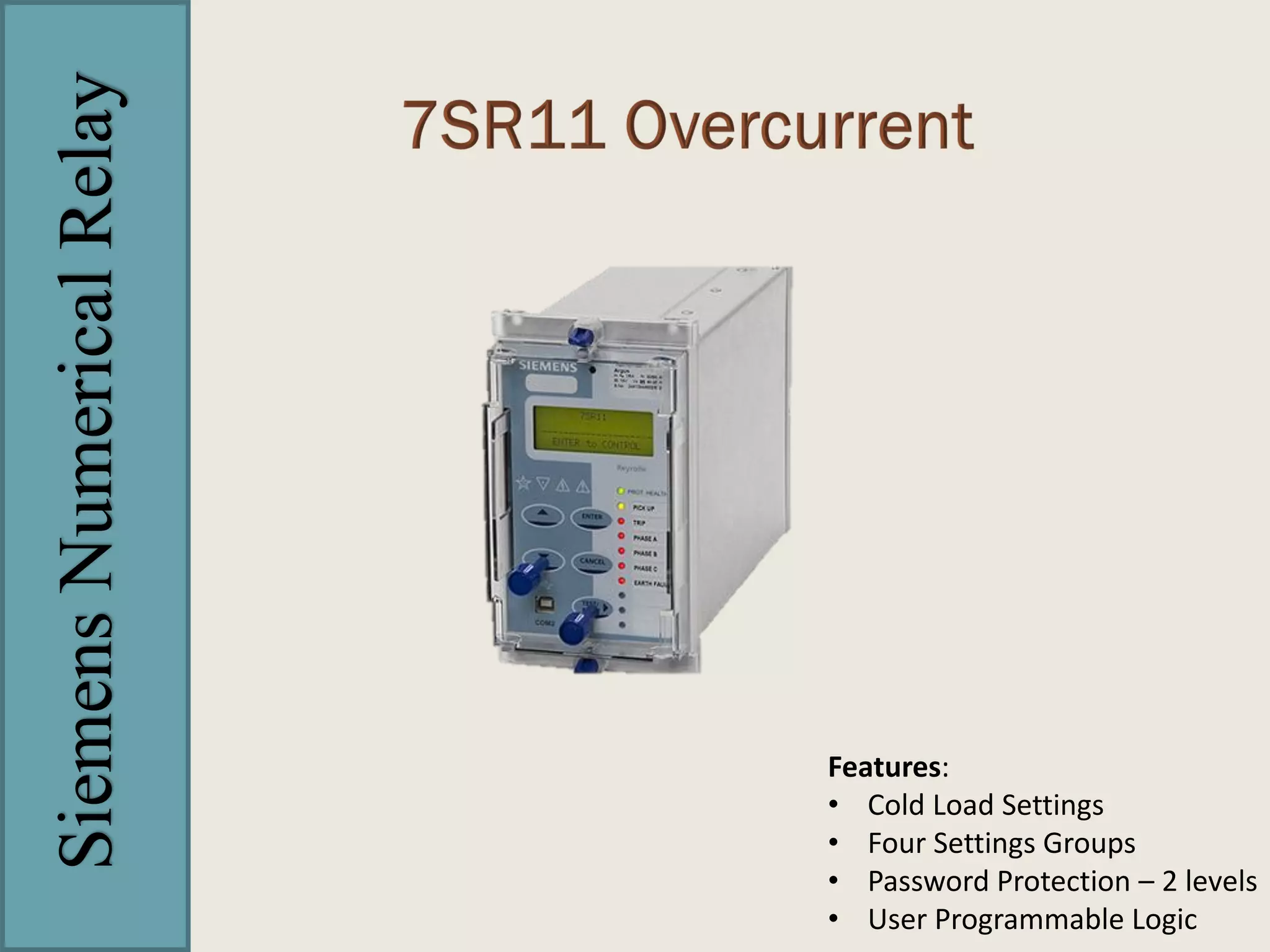 The Siemens 7SR11 and 7SR12 are advanced overcurrent protection relays that enhance the Argus family, featuring cold load settings, password protection, user programmable logic, and various monitoring functions. They offer communication access through front USB and rear RS485 ports, alongside optional IEC61850 communications, facilitating remote connection and settings adjustment via Reydisp Evolution software. With multiple protection functions including earth fault, thermal overload, and arc flash detection, these relays are housed in robust 4U high cases and designed for reliability in electrical systems.