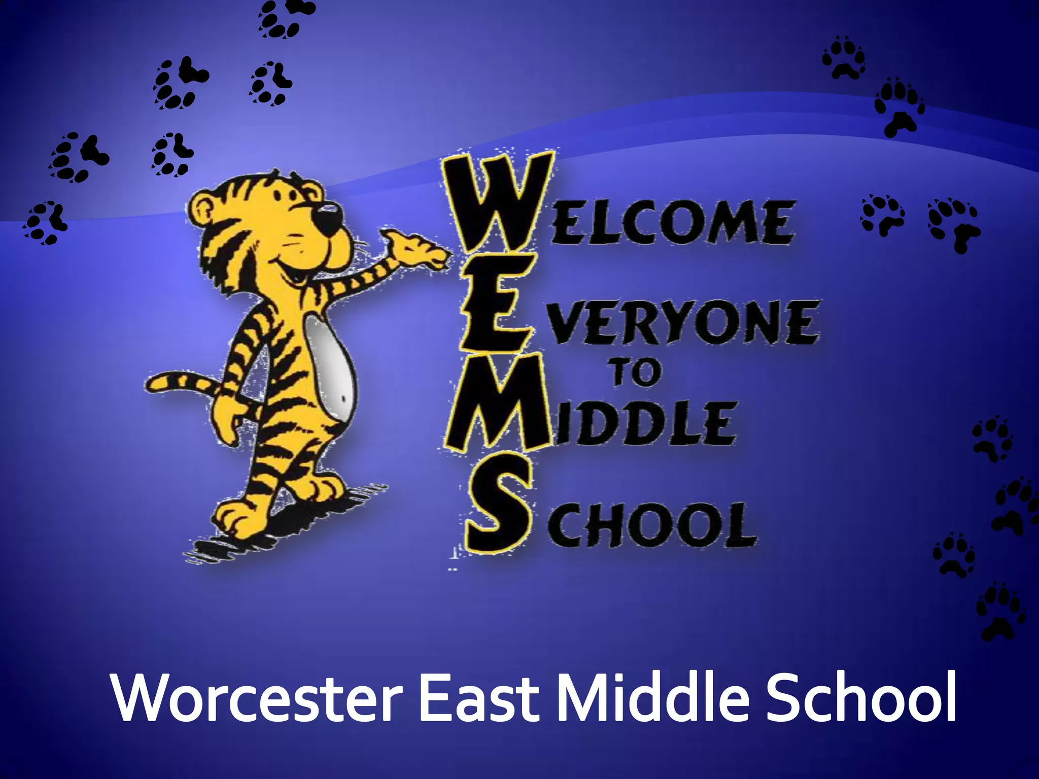 Worcester East Middle School has Mrs. Dawkins as principal and Mr. Wells and Ms. Bussing as assistant principals. The school uses Positive Behavioral Interventions and Supports (PBIS) to promote a positive culture with expectations of showing respect, taking responsibility, acting appropriately, and being ready to learn. The school offers various afterschool programs, clubs, and sports teams as well as programs to encourage college readiness such as AVID and GEAR UP.