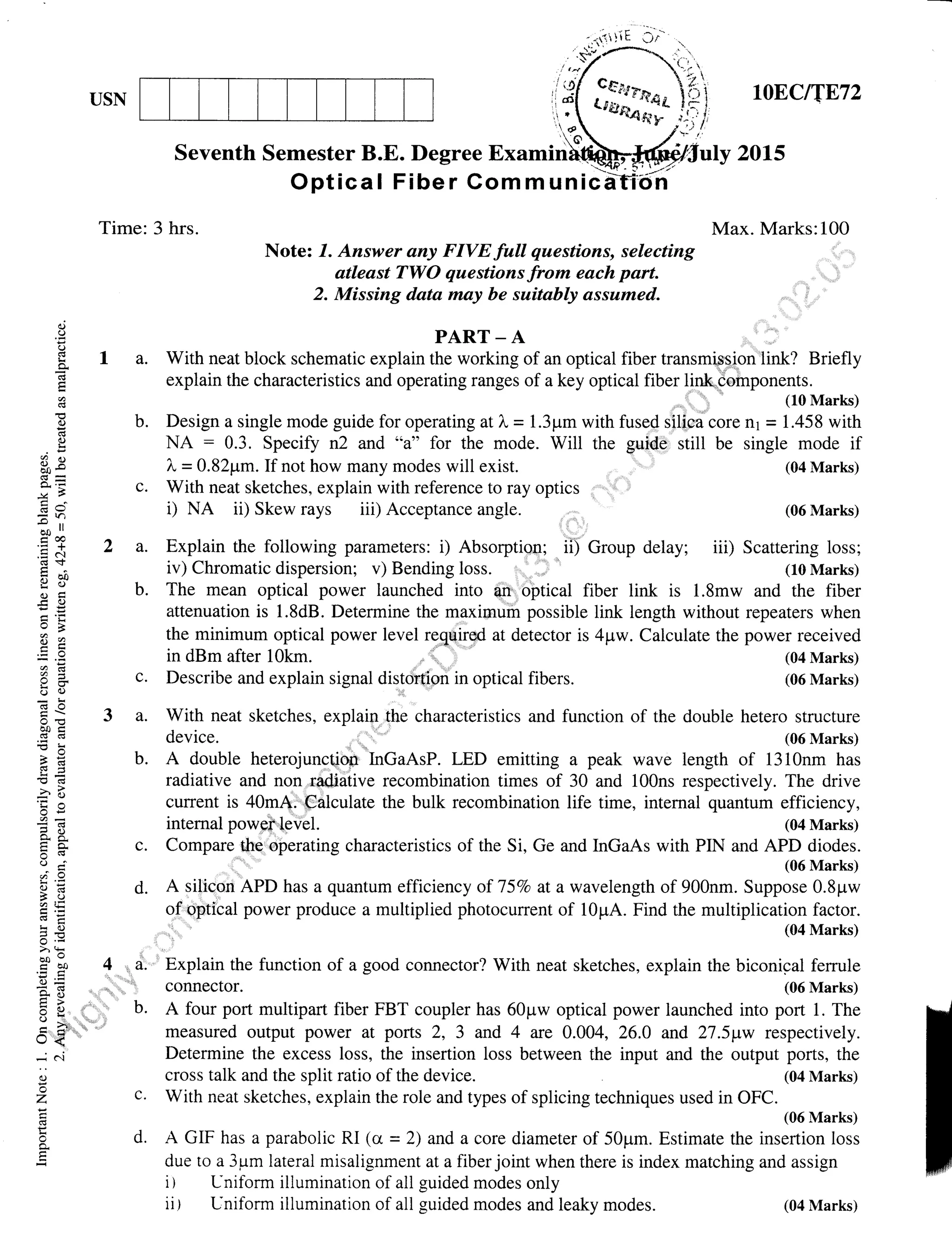 - The exam is 3 hours long and worth 100 marks. Students must answer 5 full questions, selecting at least 2 from each part.