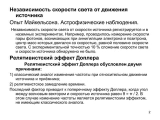 Документ обсуждает основные принципы теории относительности и квантовой механики, включая релятивистское замедление времени, независимость скорости света от источника, гравитационное красное смещение и корпускулярно-волновой дуализм. Описаны экспериментальные подтверждения концепций, таких как эффект комптона и волны де Бройля, а также введены ключевые понятия, такие как принцип неопределенности Гейзенберга и волновая функция. Документ подчеркивает изменение представлений о микромире и необходимость новой теории, чтобы объяснить поведение электронов в атоме.