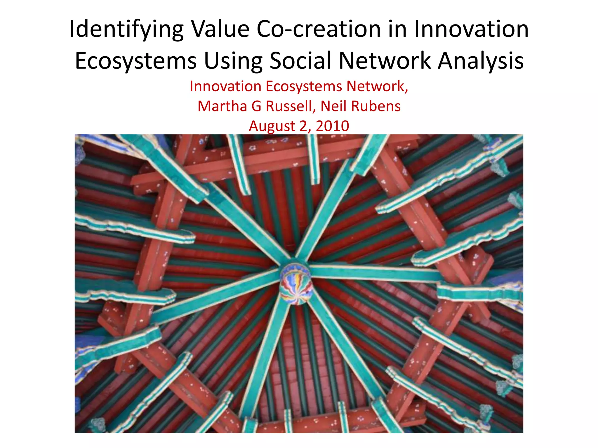 The document discusses the concept of innovation ecosystems, which are inter-organizational networks promoting business growth through collaboration and resource sharing. It emphasizes the need for metrics to assess investment impacts and the importance of interconnections within these ecosystems, especially in the context of Chinese innovation. The authors aim to analyze investment patterns and co-creation of value within these ecosystems to enhance understanding and guide future economic development.