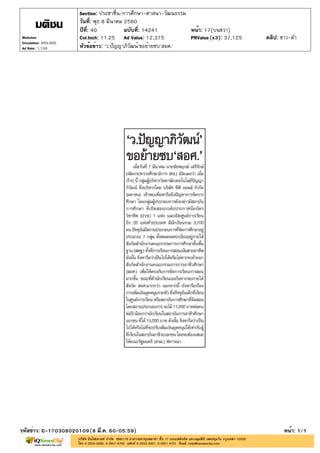 14241 วันที่: พุธ 8 มีนาคม 2560 Section: ประชาชื่น/การศึกษา-ศาสนา-วัฒนธรรม หน้า: 17(บนขวา) หัวข้อข่าว: 'ว.ปัญญาภิวัฒน์'ขอย้ายซบ'สอศ.' รหัสข่าว: C-170308020109(8 มี.ค. 60/05:59) หน้า: 1/1 Matichon Circulation: 950,000 Ad Rate: 1,100 Col.Inch: 11.25 Ad Value: 12,375 PRValue : 37,125 คลิป: ขาว-ดำ(x3)