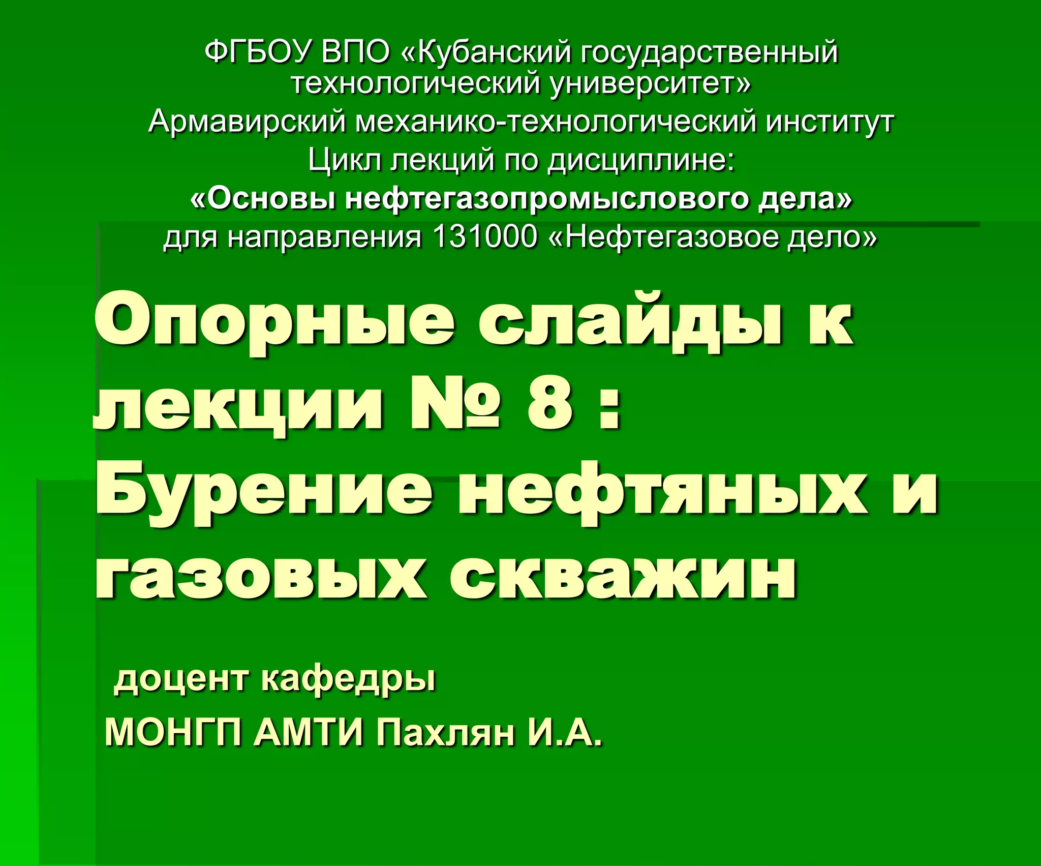 Доклад посвящен технологии бурения нефтяных и газовых скважин, включая виды и методы бурения, такие как ударное и вращательное бурение. Рассматриваются исторические аспекты развития бурения, начиная с Древнего Египта и до современных технологий, а также основные операции, связанные с процессом бурения. Лекция также включает классификацию бурения по глубине и характеру разрушения горных пород, а также используемое оборудование.