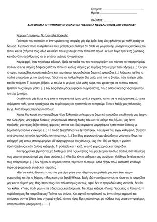ΔΙΑΓΩΝΙΣΜΑ Α' ΤΡΙΜΗΝΟΥ ΣΤΟ ΜΑΘΗΜΑ "ΚΕΙΜΕΝΑ ΝΕΟΕΛΛΗΝΙΚΗΣ ΛΟΓΟΤΕΧΝΙΑΣ"