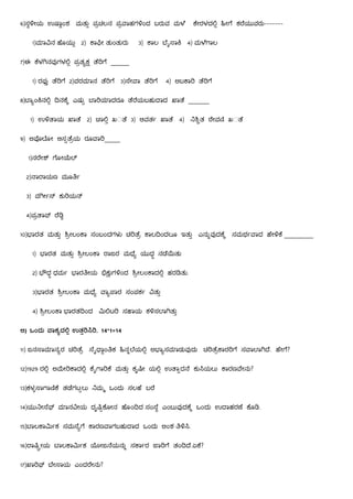ೕಯ ೆ ೆಗಳ ಾವ ವ ? 19) ಾ ೆ ೖ ಅ ರು ಒಂದು ಅದು ತ ೋಹ ಸಮ . 20)ಗಂ ಾ ನ ಯ ಬಯಲು ಪ ೇಶದ ಸಕ ೆ ಾ ಾ ೆ ೆಚು ೇಂ ೕಕೃತ ಾ ೆ ಏ ೇ? 21) ೊರ ೆ ಆಯವ ಯದ ಅಥ . 22)ಉ ಾಯ ಾ ೆಯ ಒಂದು ಪ ೕಜನ . 23) ೕ ಸಂ ೆಯ ಅಧ ರು ಾರು? 24) ತ ಾ ಆ ಾಯವ ೈಜ ಅ ವೃ ಯ ಾಪಕ ಾಗುವ ಲ. ಏ ೆ? ಇ) ಮೂರು ಾಲು ಾಕ ದ ಉತ . 15*2=30 25) ಸಮುದ ಾನ ೆ ೈ ಾ ಕ ೆಳವ ೆ ಾರಣ ಸಮ . 26) ೈದ ಾ ಾ ಕ ಾ ಟಕದ ಪ ೇಶಗಳನು ಪ ಾ 27) ಾ ೕ ೇ ಾನಂದರು ಯುವ ಶ ಯ ೆ ೕರಕ. ೇ ೆ ? 28) ೕ ಾ ಾಂ ಯ ಪ ಾಮ ೇನು? ಅಥ ಾ ರ ಾ ದ ಾ ೈ ೊಂಡ ಸು ಾರ ಾ ಕ ಮಗ ಾವ ವ ? 29)ಕ ಾ ಟಕ ಾಜ ದ ಬಡತನ ಾರ ೆ ೆ ರೂ ರುವ ೕಜ ೆಗ ಾವ ವ ? 30)ಭ ೕ ಾದ ೆ ಗ ಹ ೆ ಾರತ ೈ ೊಂ ರುವ ಕ ಮಗ ಾವ ವ ? 31)ಜನಮಂ ೆ ಎಂದ ೇನು? ಉ ಾಹರ ೆ ೊ 32)ಪ ವ ಮತು ಪ ಮ ಕ ಾವ ಯ ಎರಡು ವ ಾ ಸ . 33)ಮ ನ ಸ ೆತ ೆ ಾರಣಗಳನು ೕ . 34) ಾರತದ ಎ ೆ ಉದುರುವ ಾನೂ ಸಸ ಗಳ ಲ ಣ . 35)ದೂರ ಸಂ ೇ ತಂತ ಾನ ಕು ತು ಬ ೆ . 36)ಚಂಡ ಾರುತ ಪ ಾಮ . 37) ಾ ೕಣ ಪ ೇಶ ಂದ ನಗರ ಪ ೇಶ ೆ ವಲ ೆ ಯಂ ಸಲು ಮ ಸಲ ೆ ಏನು? 38)ಪಂಚ ಾ ಕ ೕಜ ೆಯ ಉ ೇಶ ಬ ೆ .