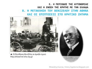8. Η μετάκληση του Βενιζέλου στην Αθήνα και οι επιπτώσεις στο Κρητικό Ζήτημα