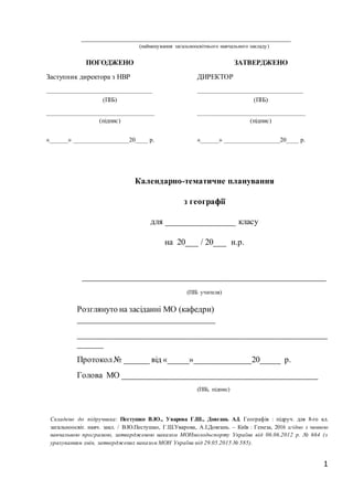 Складено до підручника: Пестушко В.Ю., Уварова Г.Ш., Довгань А.І. Географія : підруч. для 8-го кл.