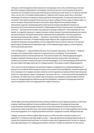 В данном тексте автор размышляет о том, как отсутствие отца повлияло на ее жизнь и восприятие окружающего мира, включая концепцию ангелов и научные достижения по воспроизводству. Героиня описывает своё детство, взаимоотношения с матерью и другими людьми, а также свои мечты о дружбе и семейной жизни. Через философские рассуждения о рудиментах и атавизмах она отражает свои чувства и вопросы о семейных ценностях и необходимости отца.