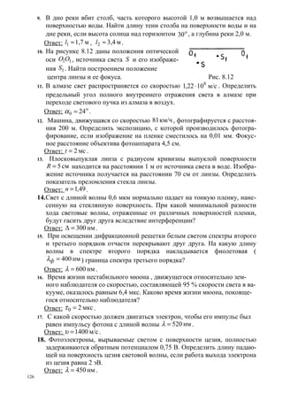 Документ представляет собой набор задач для самостоятельного решения по физике, охватывающих темы колебательных движений, оптики и радиоактивности. Каждая задача включает описание, условия и ответ, который вычисляется на основе данных физических принципов. Примеры задач позволяют решить практические проблемы, используя формулы и концепции из курсов физики.