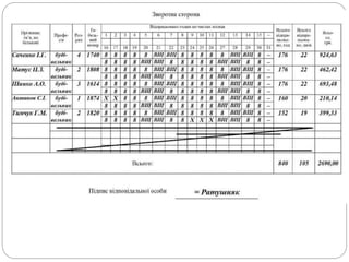 Рік Місяць СільгосппідприємствоШифр Ферма Бригада Ланка Табель обліку робочого часу _____ Прізвище, ім’я по-батькові Посада Оклад Табельнийномер Відпрацьовано годин Нез’явлення, люд-год Відпрацьовано годин 1 2 3 4 5 6 7 8 9 10 11 12 13 14 15 Чергова відпустка Відпусткау зв’язкуз пологами Хвороба Громадські доручення прогули Вихідніі святкові днів год Сума 16 17 18 19 20 21 22 23 24 25 26 27 28 29 30 31
