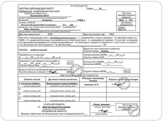 Подорожній лист №______вантажного автомобіля "___" ____________ 20__ р. Місце для штампу підприємства Режим роботи ____________ _____________________ Код Робота водія та автомобіля Колона ______________ Бригада операція час за графіком пул. пробіг. км показ спідометра час, фактичний час, міс., год., хв.Автомобіль __________________________ Гар. № год. хв. марка держ. № ТНП 1 2 3 4 5 6 Водій _______________________________ Таб. № виїзд із гаража прізвище, ім'я, по батькові № служб. посв. поверн. в гараж Причеп 1 ____________________________ Гар. № Рух пального, літрівмарка держ. № Причеп 2 ____________________________ Гар. № марка держ. № марки пального код марки видано залишок при час роб., год. Супроводжуючі особи виїзді поверненні спецустат. двигун 7 8 9 10 11 12 13 заправника механ. механ. диспетчера підписи Завдання водієві в чиє розпорядження час кількість годин звідки взяти вантаж куди доставити вантаж найменування вантажу кільк. їздок з вантажем відстань, км перевозки, тоннприбуття вибуття 14 15 16 17 18 19 20 21 22 23 Всього Посвідчення водія, перевірив, завдання видав, видати пального ____________________ літрів Підпис диспетчера ________________________ Водій за станом здоров'я до управління допущений підпис ________________________ штамп Виїзд дозволений, підпис механіка ______________________ Автомобіль прийняв, підпис водія _______________________ При поверненні автомобіль справний несправний Здав водій ___________________________________________ Прийняв механік _____________________________________ Особливі відмітки ______________________________________ ______________________________________________________ ______________________________________________________ ______________________________________________________ ______________________________________________________ ______________________________________________________