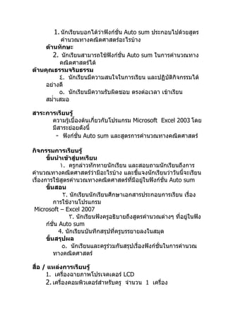 แผนการเรียนรู้การใช้งานโปรแกรม Microsoft Office Excel DOC