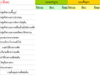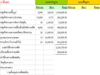 c. activity–based costingCosts of Resources (Overhead costs) Direct Attribution Resource Drivers Activities Unit-Base Drivers Nonunit-Base Drivers Products การบริหารตามกิจกรรม