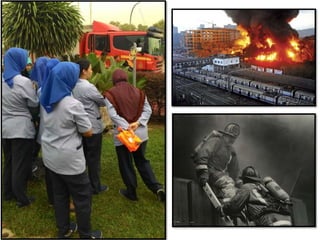 The document outlines eight lessons learned from workplace fire drills, emphasizing the importance of immediate evacuation to the designated assembly point when the alarm sounds. It highlights that fire drills allow employees to evaluate their understanding of the evacuation plan and their ability to evacuate quickly and safely. The content was prepared by Abdul Shukor.