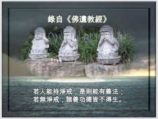錄自《佛遺教經》 若人能持淨戒,是則能有善法; 若無淨戒,諸善功德皆不得生。