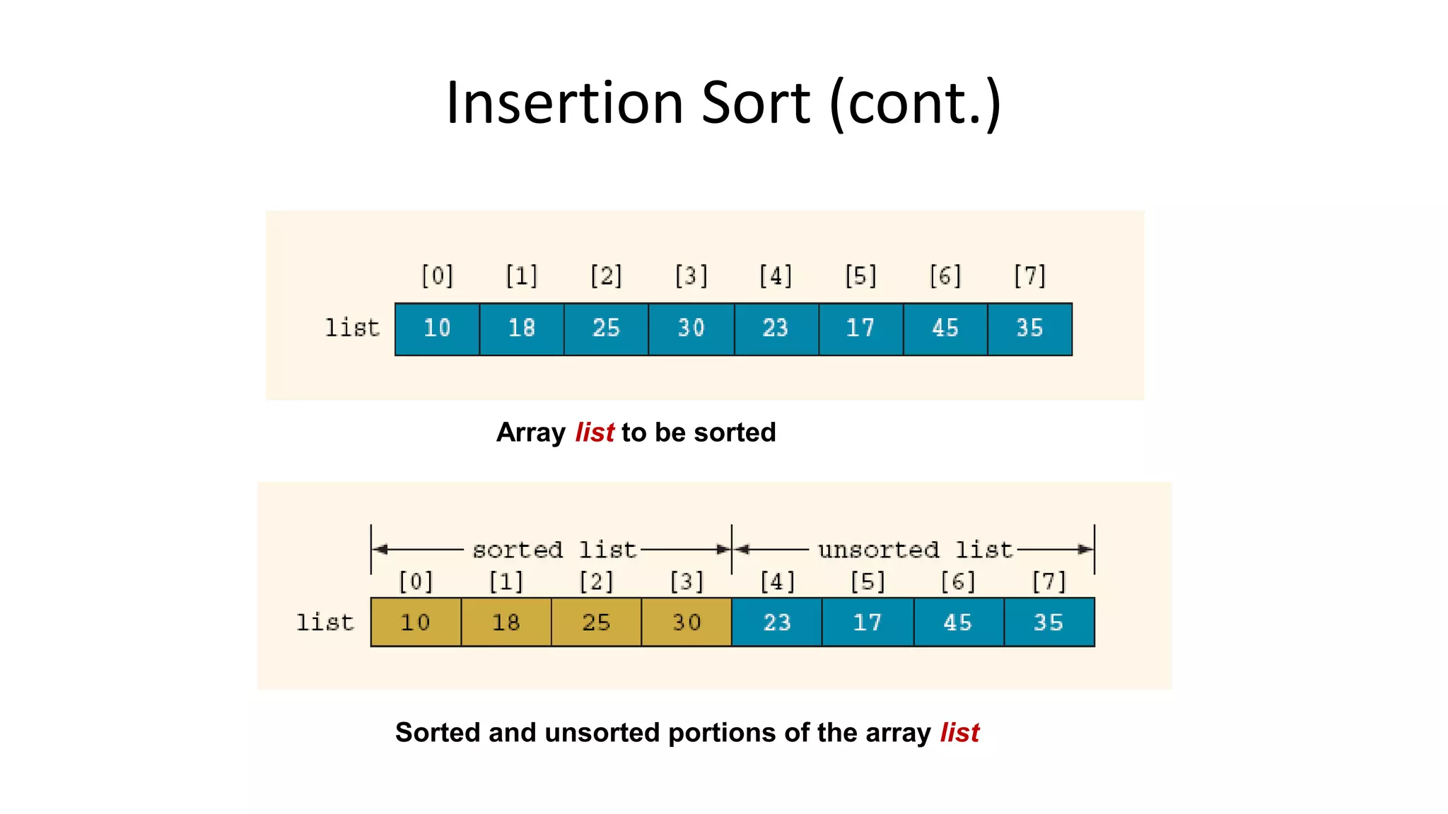 Insertion sort works by iterating through a list and inserting each element into its sorted position. It makes space by shifting larger elements to the right. For a randomly ordered array, insertion sort performs on average N2/4 key comparisons and exchanges in the worst case. However, it performs very efficiently on already sorted or partially sorted lists, requiring linear time. Insertion sort is well-suited for datasets where elements are mostly sorted or for very small lists.