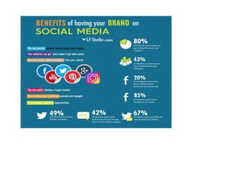 This document discusses social media marketing. It outlines the key steps in a social media marketing strategy as planning content, publishing posts, engaging with users, and analyzing engagement. It also lists popular social media marketing tools and the top benefits of social media marketing such as brand recognition, increased sales, cost-effectiveness, and higher conversion rates. Finally, it states that social media is becoming an important part of digital marketing that provides great benefits by connecting with customers worldwide.