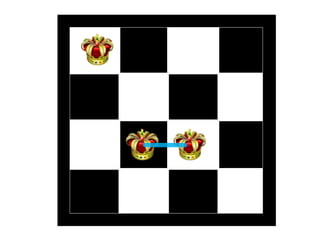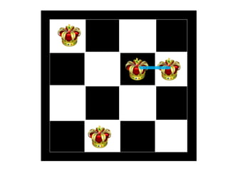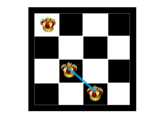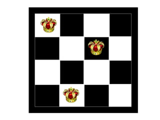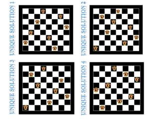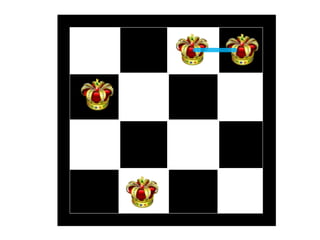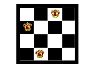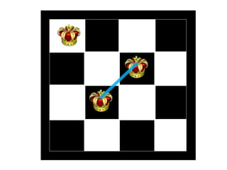 The document discusses the 8 queens problem and how backtracking can be used to solve it. The 8 queens problem aims to place 8 queens on a chessboard so that no two queens attack each other. Backtracking is an algorithm that builds candidate solutions incrementally and abandons partial solutions ("backtracks") that cannot be completed. It explains that backtracking works by placing queens in columns, removing placements that lead to conflicts, and backtracking to try other placements. The document also provides the number of solutions for placing different numbers of queens on boards of corresponding sizes.