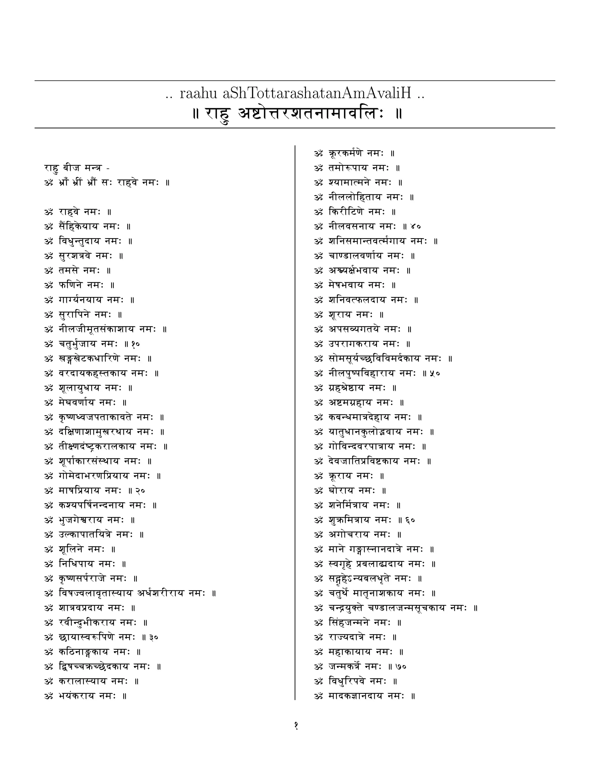 8. rahu aṣṭatottaraśatanāmavaliḥ