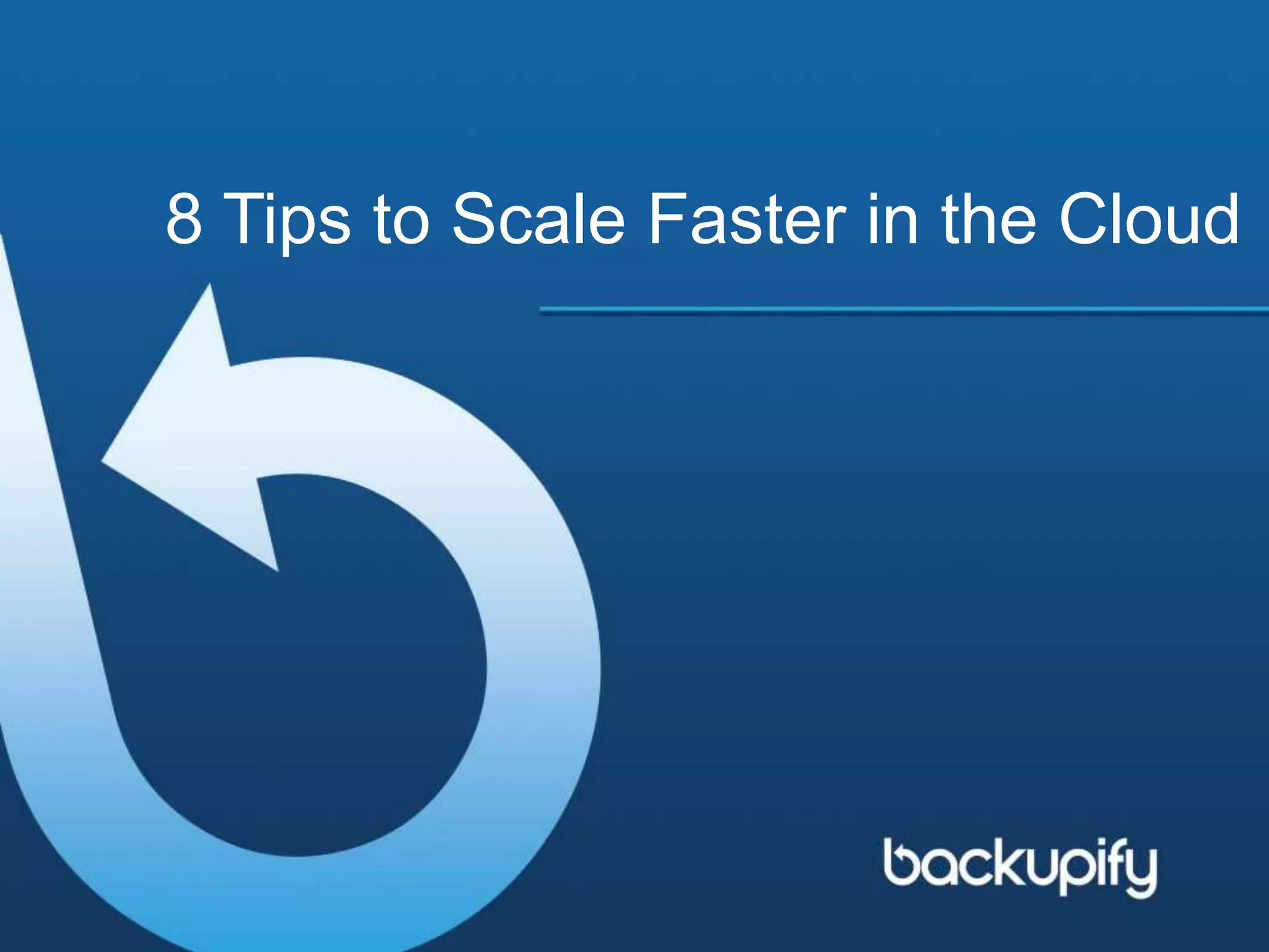 This document outlines 8 tips for scaling a business faster in the cloud. It notes that cloud services allow companies to grow with little capital outlay and offers pay-as-you-go billing. Using cloud computing provides cost certainty, lower technology overhead by managing servers and software, and the ability to focus on core competencies rather than infrastructure. The cloud also provides flexibility, on-demand access to technology, continuous innovation, collaboration tools, and enhanced productivity. In summary, the cloud offers scalable benefits that help businesses grow faster.