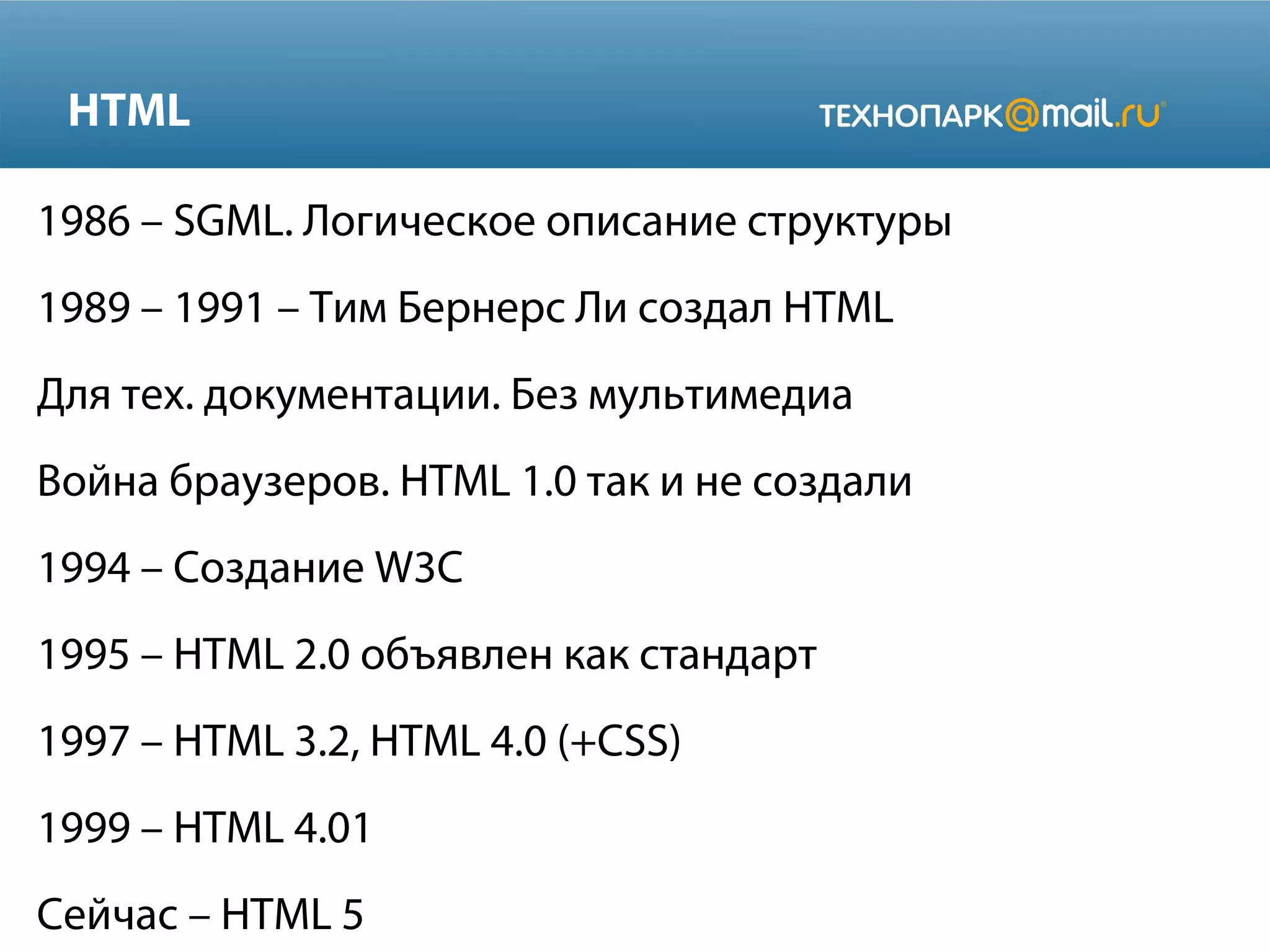 Документ описывает историю и развитие языков HTML и CSS, начиная с создания HTML Тимом Бернерсом-Ли в 1989 году до текущей версии HTML5. Он охватывает ключевые особенности и синтаксис различных версий HTML и CSS, включая правила разметки, структуру документа, типы элементов и стилизацию. Также рассматриваются основы работы с гиперссылками, формами и позиционированием элементов на веб-странице.