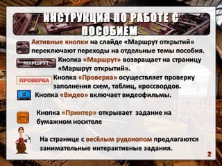 Документ содержит инструкции и образовательные задания, посвященные горнозаводскому краю Урала в XVIII веке, его экономике, социальной структуре и литературе. Основное внимание уделяется становлению горнозаводской цивилизации, деятельности известных личностей, таких как Акинфий Демидов и Василий Татищев, а также важным историческим событиям и произведениям, связанным с культурой и историей региона. В конце документа находятся задания и тесты для учеников для закрепления изученного материала.