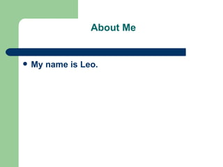 About Me My name is Leo.