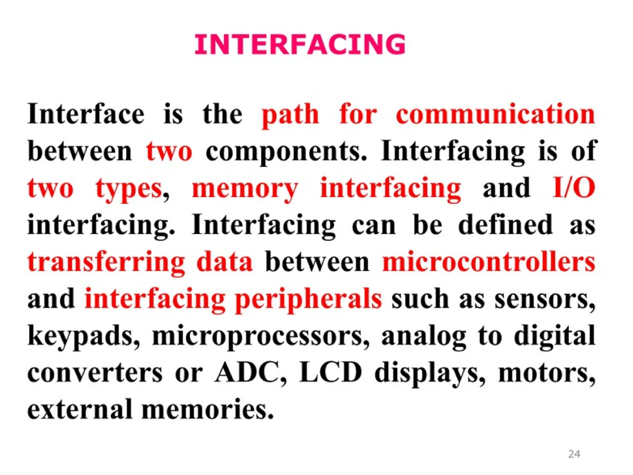The document discusses various interfacing techniques with the 8051 microcontroller, including LCD, external ROM, RAM, ADC, and DAC integration. It explains serial communication protocols such as USART, UART, SPI, and USB, highlighting their functions, advantages, and limitations. Additionally, it outlines how the SPI protocol facilitates communication between a master and multiple slave devices using specific data lines and control registers.